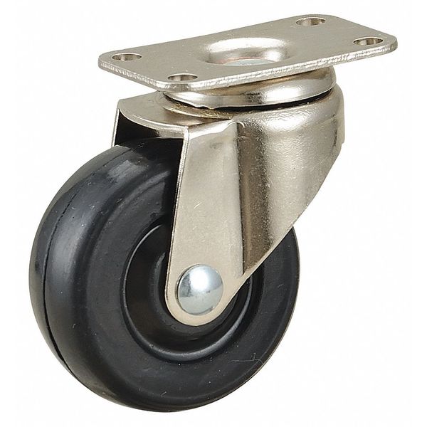 Swivel Plate Caster, Rubber, 2 in., 75 lb.