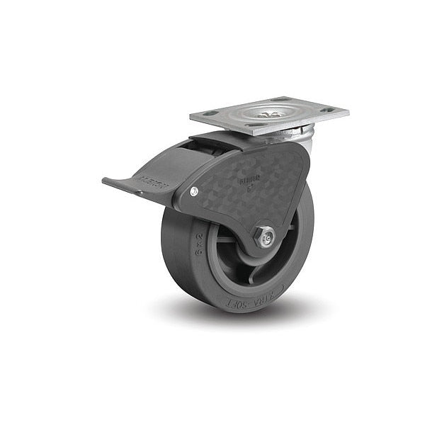 4" X 2" Non-Marking Rubber Soft Flat Swivel Caster, Total Lock Brake, Loads Up To 350 lb