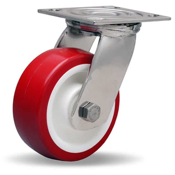 Stainless Steel Swivel Caster, 5" x 2" Poly-Tech Polyurethane (95A) on Polypropylene Wheel