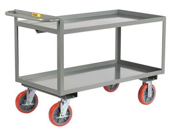 Steel Utility Cart with Lipped Metal Shelves, Flat, 2 Shelves, 3,600 lbSKU G2246697Categories Material HandlingDescription Utility Cart with Lipped Metal Shelves, Load Capacity 3,600 lb, Steel Material, 12 ga Gauge, Powder Coated Finish, Gray Color, Overall Length 53 1/2 in, Overall Width 24 in, Number of Shelves 2, Capacity per Shelf 1,800 lb, Distance Between Shelves 18 in, Shelf Length 48 in, Shelf Width 24 in, Includes Raised Offset Handle, Handle Height 35 in, Top Shelf Height 32 in, Assembled/Unassembled AssembledgraingerSKU: 19G782, mscSKU: , zoro_no: G2246697, mongo_id: 65bbe7823aaddbd5a909c680