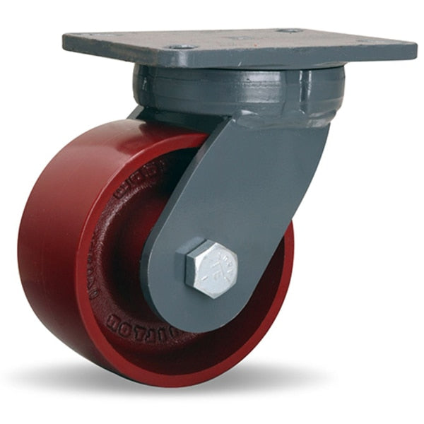 ForgeMaster Swivel Caster, 6" x 3" Ergo-Glide XT 1" thick Polyurethane (82A) on Cast Iron Wheel