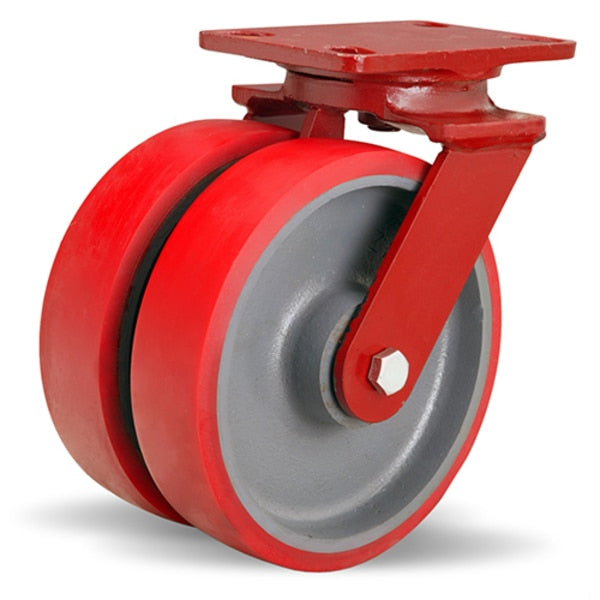 Heavy Service Dual-Wheel Swivel Caster, 8" x 2" Ultralast Premium Polyurethane on Cast Iron Wheels