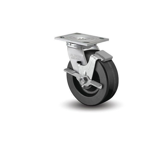 Swivel Plate Cstr, Solid Rbbr, 6-5/16", Brk, Caster Load Rating Range: Heavy-Duty