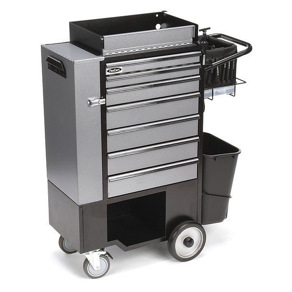 Black, Light Duty, Tool Utility CartSKU G9084133Categories Lighting Tools , Material HandlingDescription Tool Utility Cart, FC-100 Series, Standard Duty, Width 14 1/2 in, Depth 14 in, Height 45 in, Number of Drawers 7, Color Silver/Black, Drawer Color Silver, Drawer Capacity 75 lb, Drawer Slides Ball Bearing, Full Extension, Finish Powder Coated, Storage Capacity 22,680 cu in, Load Rating 250 lb, Caster Size 5 in x 1-1/4 in, Number of Shelves 2, Material Steel, Aluminum, Gauge 22 to 16, Work Surface Material Rubber, Steel, Caster Wheel Material Rubber, Caster Type (2) Fixed, (2) Swivel with LockgraingerSKU: 499H45, mscSKU: , zoro_no: G9084133, mongo_id: 65bbe7753aaddbd5a90967f6