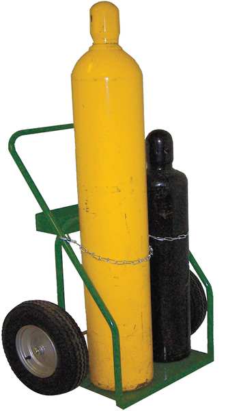 Welding Cylinder Truck, 2 Cyl, 780 lb.SKU G3366955Categories Material HandlingDescription 2, Overall Height 42 in, Overall Width 27 in, Overall Depth 9 1/2 in, Load Capacity 780 lb, Securing Mechanism Chain, Caster/Wheel Configuration (2) Axle-Mounted, Axle-Mounted Wheel Type Pneumatic, Axle-Mounted Wheel/Tread Material Rubber, Axle-Mounted Wheel Dia. 16 in, Handle Type Continuous Frame Flow-Back, Includes Firewall No, Includes Foot Assist Without Foot Assist, Includes Lever Pushoff Without Lever Pushoff, Includes Lift Ring Without Lift Ring, Frame Type Rounded BackgraingerSKU: 5WXD6, mscSKU: , zoro_no: G3366955, mongo_id: 65bbe7753aaddbd5a90964ef