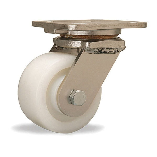 Stainless Steel Workhorse Swivel Caster, 4" x 2" White Nylon Wheel, 1/2" Sealed Precision Ball Bearing