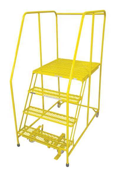 70 in H Steel Rolling Ladder, 4 StepsSKU G0996558Categories Material HandlingDescription Rolling Ladder, Material Steel, Platform Height 40 in, Handrails Included Yes, Handrail Height 30 in, Overall Height 70 in, Number of Steps 4, Assembled, Load Capacity 450 lb, Step Tread Perforated, Platform Depth 30 in, Platform Width 24 in, Bottom Width 30 in, Base Depth 51 in, Overall Width 30 in, Climbing Angle 59 Degrees , Step Depth 7 in, Step Width 24 in, Ladder Actuation Weight Activated Step Lock, Finish Powder Coated, Color Yellow, Standards ANSI, OSHA, Rear Exit NograingerSKU: 21UR04, mscSKU: , zoro_no: G0996558, mongo_id: 65bbe7643aaddbd5a909139e