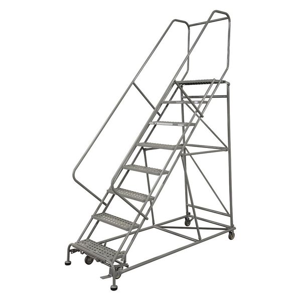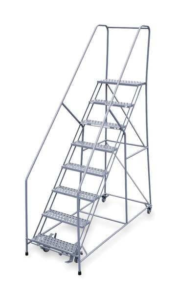 SKU G9852692Categories Material HandlingDescription Rolling Ladder, Material Steel, Platform Height 80 in, Handrails Included Yes, Handrail Height 30 in, Overall Height 110 in, Number of Steps 8, Assembled, Load Capacity 450 lb, Step Tread Antislip Vinyl, Platform Depth 12 in, Platform Width 24 in, Bottom Width 32 in, Base Depth 78 in, Overall Width 32 in, Climbing Angle 59 Degrees , Step Depth 7 in, Step Width 24 in, Ladder Actuation Foot Activated Step Lock, Finish Powder Coated, Color Gray, Standards ANSI, OSHA, Rear Exit NograingerSKU: 6ZEW6, mscSKU: , zoro_no: G9852692, mongo_id: 65bbe7643aaddbd5a9091397