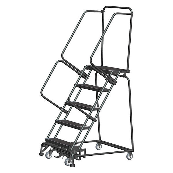 SKU G4509401Categories Material HandlingDescription Rolling Ladder, Material Steel, Platform Height 50 in, Handrails Included Yes, Handrail Height 30 in, Overall Height 83 in, Number of Steps 5, Assembled, Load Capacity 450 lb, Step Tread Expanded Metal, Platform Depth 14 in, Platform Width 24 in, Bottom Width 32 in, Base Depth 43 in, Overall Width 32 in, Climbing Angle 59 Degrees , Step Depth 7 in, Step Width 24 in, Ladder Actuation Weight Activated Step Lock, Finish Powder Coated, Color Gray, Standards ANSI, OSHAgraingerSKU: 41LF13, mscSKU: , zoro_no: G4509401, mongo_id: 65bbe7643aaddbd5a9091354