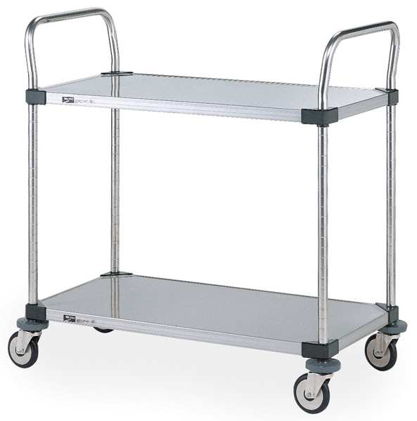 Stainless Steel Corrosion-Resistant Utility Cart with Flush Metal Shelves, (2) Raised, 2 Shelves
