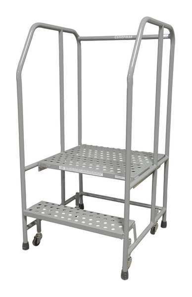 50 in H Steel Rolling Ladder, 2 StepsSKU G0995237Categories Material HandlingDescription Rolling Ladder, Material Steel, Platform Height 20 in, Handrails Included Yes, Handrail Height 30 in, Overall Height 50 in, Number of Steps 2, Assembled, Load Capacity 450 lb, Step Tread Serrated, Platform Depth 20 in, Platform Width 24 in, Bottom Width 26 in, Base Depth 28 in, Overall Width 26 in, Climbing Angle 59 Degrees , Step Depth 7 in, Step Width 24 in, Ladder Actuation Weight Activated Step Lock, Finish Powder Coated, Color Gray, Standards ANSI, OSHA, Rear Exit NograingerSKU: 21UP57, mscSKU: , zoro_no: G0995237, mongo_id: 65bbe75b9a749db822731b05