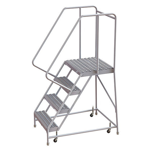 SKU G0998947Categories Material HandlingDescription Rolling Ladder, Material Steel, Platform Height 40 in, Handrails Included Yes, Handrail Height 30 in, Overall Height 70 in, Number of Steps 4, Unassembled, Load Capacity 450 lb, Step Tread Serrated, Platform Depth 10 in, Platform Width 30 in, Bottom Width 33 in, Base Depth 54 in, Overall Width 32 in, Climbing Angle 59 Degrees , Step Depth 7 in, Step Width 30 in, Ladder Actuation Foot Activated Step Lock, Finish Powder Coated, Color Gray, Standards ANSI, OSHA, Rear Exit NograingerSKU: 21UW04, mscSKU: , zoro_no: G0998947, mongo_id: 65bbe75b9a749db822731b3c