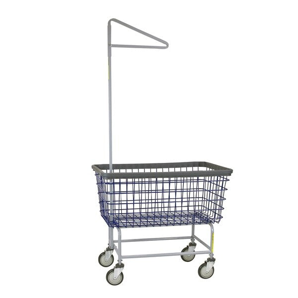 Wire Utility Cart with Single Pole Rack, 4.5 Bushel, Blue Basket, Gray Base/Rack