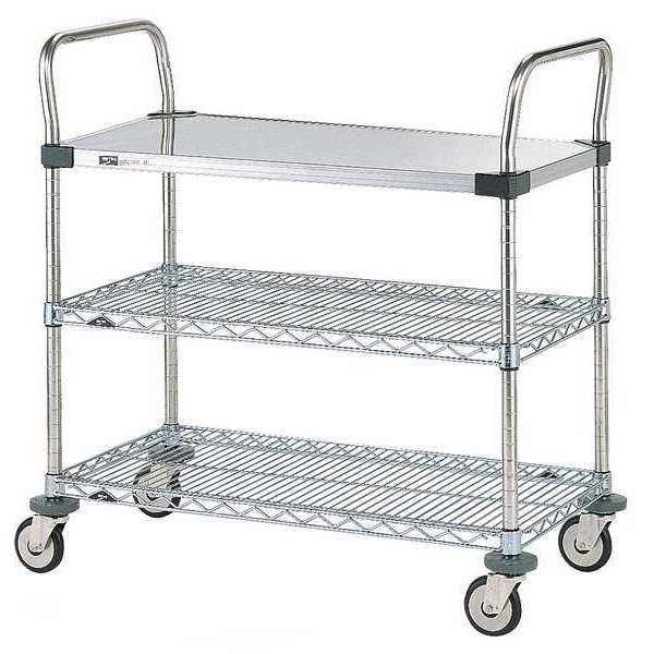 SKU G6993357Categories Material HandlingDescription Corrosion-Resistant Utility Cart with Shallow Lipped Wire Shelves, Load Capacity 375 lb, Number of Shelves 3, Shelf Width 21 in, Shelf Length 36 in, Material Stainless Steel, Finish Chrome, Caster Wheel Dia. 5 in, Color Silver, Caster Brake Type No Brake Included, Caster Wheel/Tread Material Rubber, Caster/Wheel Configuration (4) Swivel, Distance Between Shelves 10 in, Handle Type (2) Raised, Lip Style 4-Sided Lipped, Shelf Orientation Flat, Collapsible No, Overall Height 39 ingraingerSKU: 20W638, mscSKU: , zoro_no: G6993357, mongo_id: 65bbe74b9a749db82272e7fb