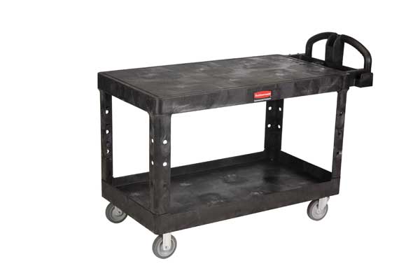 SKU G1187873Categories Material HandlingDescription Utility Cart with Deep Lipped & Flush Plastic Shelves, Number of Shelves 2, Lip Style Combination, Load Capacity 750 lb, Shelf Length 46 1/2 in, Shelf Width 25 in, Top Shelf Height 36 in, Distance Between Shelves 19 1/4 in, Handle Type Ergonomic, Handle Height 38 1/2 in, Caster Brake Type No Brake Included, Caster Wheel/Tread Material Thermoplastic Rubber, Caster Wheel Dia. 5 in, Caster/Wheel Configuration (2) Rigid, (2) SwivelgraingerSKU: 4DFV2, mscSKU: 79167409, zoro_no: G1187873, mongo_id: 65bbe74b9a749db82272e816