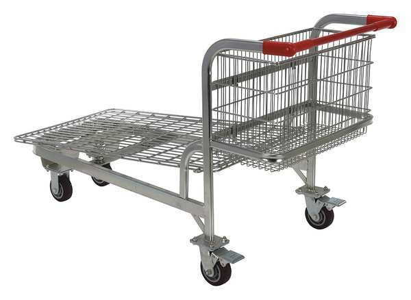 SKU G5646216Categories Material HandlingDescription Platform Shopping Cart, Shopping Cart Style Nestable Platform with Back Basket, Load Capacity 275 lb, Basket Material Steel, Basket Finish/Coating Zinc Plated, Frame Material Steel, Frame Finish/Coating Zinc Plated, Caster/Wheel Configuration (2) Rigid, (2) Swivel, Color Silver, Overall Height 37 in, Overall Length 59 1/2 in, Overall Width 29 in, Basket Height 15 1/2 in, Basket Length 26 in$847.74 / eachWeb price