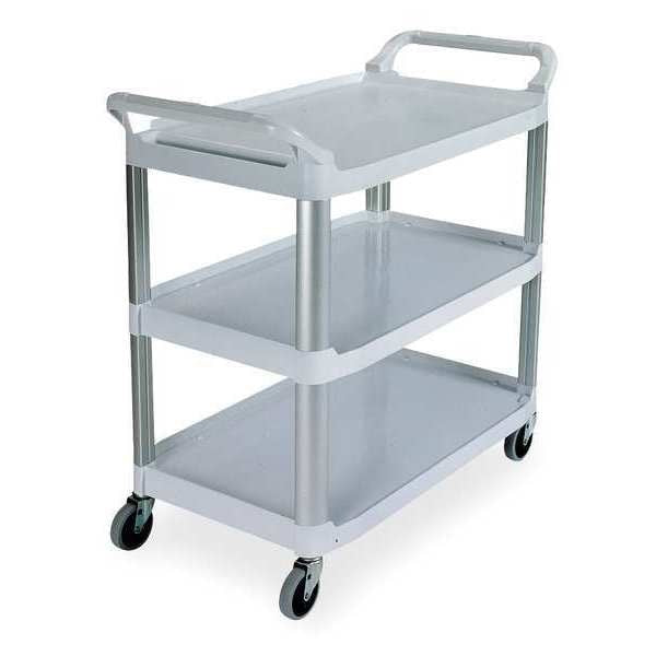 Plastic Dual-Handle Utility Cart with Lipped Plastic Shelves, (2) Raised, 3 Shelves, 300 lbSKU G2049381Categories Material HandlingDescription Dual-Handle Utility Cart with Lipped Plastic Shelves, Number of Shelves 3, Lip Style 4-Sided Lipped, Load Capacity 300 lb, Shelf Length 40 in, Shelf Width 20 in, Top Shelf Height 37 3/4 in, Distance Between Shelves 11 3/4 in, Distance Between Top and Middle Shelf 11 3/4 in, Distance Between Middle and Bottom Shelf 11 3/4 in, Handle Type (2) Raised, Handle Height 37 7/8 in, Caster Brake Type No Brake Included, Caster Wheel/Tread Material Elastomer, Caster Wheel Dia. 4 ingraingerSKU: 4MC25, mscSKU: 89758759, zoro_no: G2049381, mongo_id: 65bbe74b9a749db82272e817