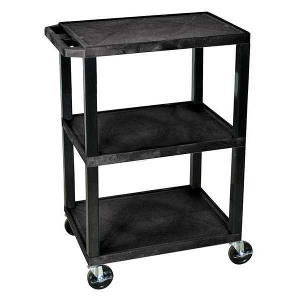 Thermoplastic Resin Utility Cart with Lipped Plastic Shelves, Flat, 3 Shelves, 300 lb
