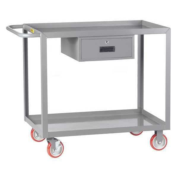 SKU G2246590Categories Material HandlingDescription Utility Cart with Lipped Metal Shelves, Load Capacity 1,200 lb, Steel Material, 12 ga Gauge, Powder Coated Finish, Gray Color, Overall Length 53 1/2 in, Overall Width 24 in, Number of Shelves 2, Capacity per Shelf 600 lb, Distance Between Shelves 25 in, Shelf Length 48 in, Shelf Width 24 in, Includes Drawer with Cylinder Lock and (2) Keys, Handle Height 35 in, Top Shelf Height 35 in, Assembled/Unassembled AssembledgraingerSKU: 19G824, mscSKU: , zoro_no: G2246590, mongo_id: 65bbe74b9a749db82272e812