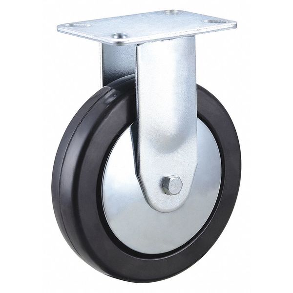 Rigid Plate Caster, Rubber, 6 in., 280 lb.
