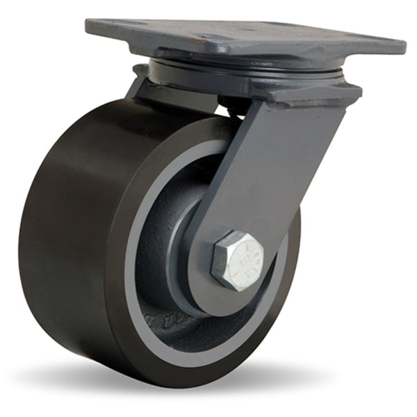Extended Service Swivel Caster, 6" x 3" Duralast XC Polyurethane (70D) on Cast Iron Wheel