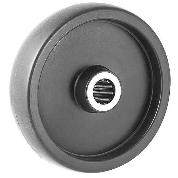 SKU G1332204Categories Material HandlingDescription Polyolefin Tread Wheel, 700 lb Load Rating, 300 to 999 lb Load Rating Range, 6 in Wheel Dia., 2 in Wheel Width, Polyolefin Wheel/Tread Material, Hard, 75 Shore D, Roller, Standard Tread Shape, 1/2 in For Axle Size, Not Included Includes Spanner Bushing, Plastic Wheel Core Material, Yes Non-Marking, 2 7/16 in Hub Length$12.02 / eachWeb price