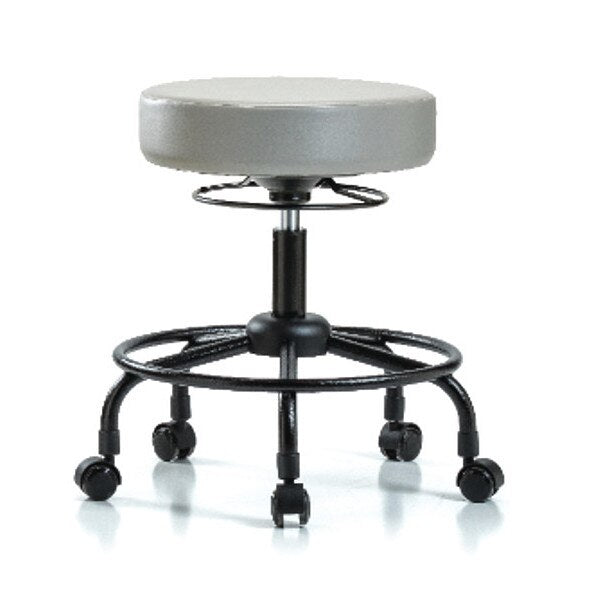 Bench Chair, Vinyl, Med, Bk, Cast, Gry, Caster Type: Rolling