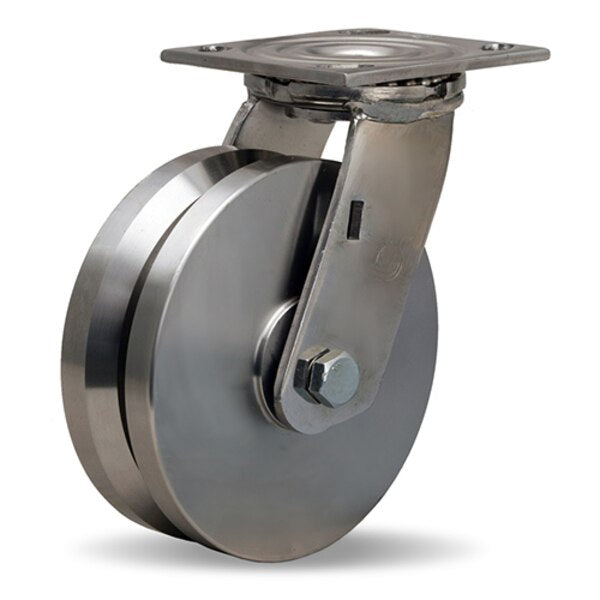 Stainless Steel Swivel Caster, 6" x 2" Stainless Steel V-Grooved Wheel, 3/4" Delrin Bearing