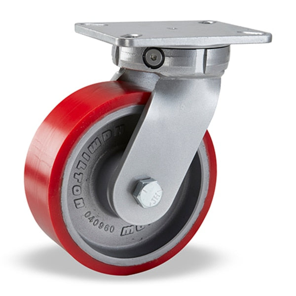 Super Endurance Swivel Caster, 8" x 3" Super Ultralast Polyurethane (95A) on Cast Iron Wheel