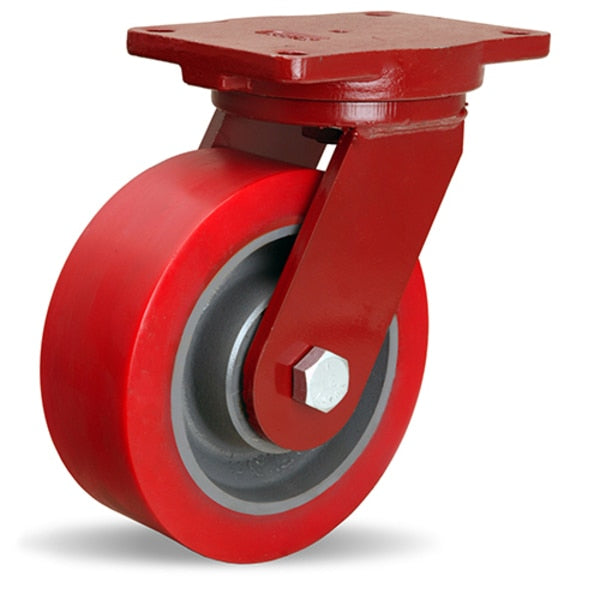 Extra Heavy Duty Swivel Caster, 8" x 3" Duralast XC Polyurethane (70D) on Cast Iron Wheel
