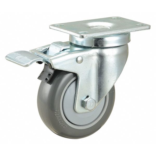 Plate Caster, 3-1/2" Wheel Dia., 275 lb.SKU G6874922Categories Material HandlingDescription Swivel, Standard Plate Caster, Load Rating 275 lb, Swivel Lock Type Total Lock, Wheel Dia. 3 1/2 in, Wheel Width 1 1/4 in, Wheel/Tread Material Polyurethane, Wheel Core Material Plastic, Non-Marking Yes, Number of Wheels 1, Caster Brake Type Total Lock Brake, Tread Shape Standard$12.21 / eachWeb price -