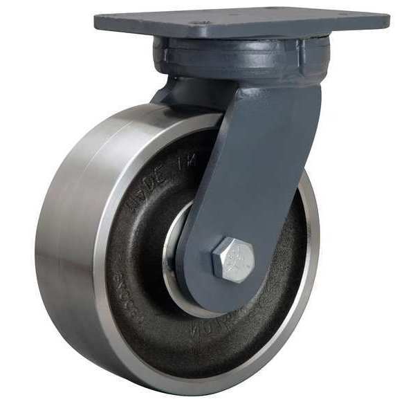 Swivel Kingpinless Plate Caster, Steel, 8 in, 6000 lb