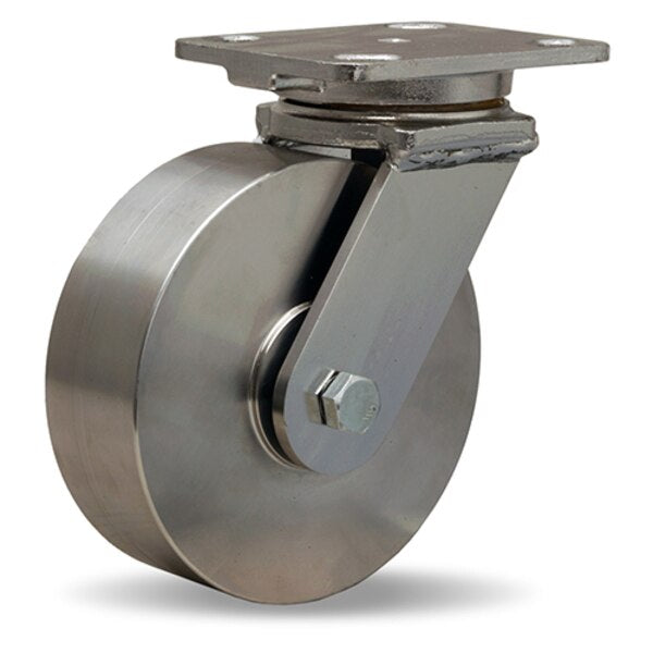 Stainless Steel Workhorse Swivel Caster, 6" x 2" Stainless Steel Wheel, 3/4" Delrin, Bearing
