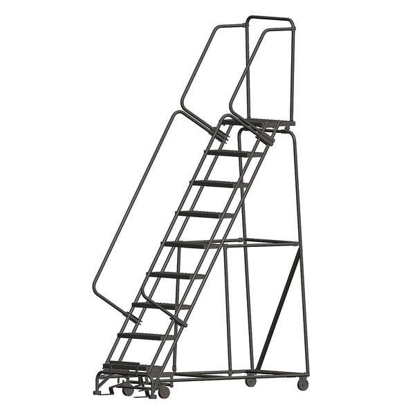 120 in H Steel Rolling Ladder, 9 StepsSKU G9863165Categories Material HandlingDescription Rolling Ladder, Material Steel, Platform Height 90 in, Handrails Included Yes, Handrail Height 30 in, Overall Height 120 in, Number of Steps 9, Assembled, Load Capacity 450 lb, Step Tread Perforated, Platform Depth 20 in, Platform Width 24 in, Bottom Width 32 in, Base Depth 77 in, Overall Width 32 in, Climbing Angle 59 Degrees , Step Depth 7 in, Step Width 24 in, Ladder Actuation Foot Activated Step Lock, Finish Powder Coated, Color Gray, Standards ANSI, OSHA, Includes Crutch Tips, Rear Exit NograingerSKU: 5FYW2, mscSKU: , zoro_no: G9863165, mongo_id: 65bbe73d3aaddbd5a9082f39