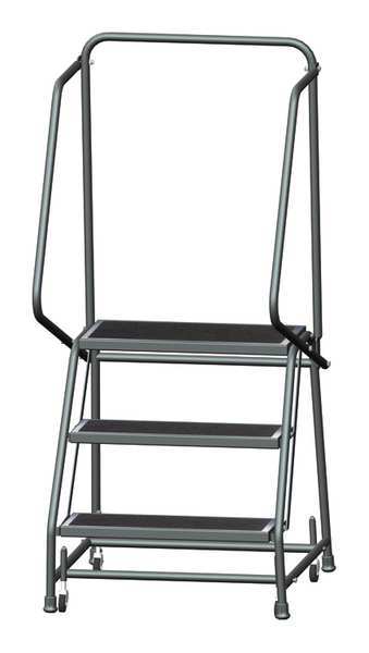 SKU G9826205Categories Material HandlingDescription Tilt and Roll Ladder, Material Steel, Platform Height 30 in, Handrails Included Yes, Handrail Height 30 in, Overall Height 60 in, Number of Steps 3, Assembled, Load Capacity 450 lb, Step Tread Serrated, Platform Depth 20 in, Platform Width 16 in, Bottom Width 20 in, Base Depth 41 in, Overall Width 20 in, Climbing Angle 59 Degrees , Step Depth 7 in, Step Width 16 in, Ladder Actuation None, Finish Powder Coated, Color Gray, Standards ANSI, OSHA, Includes 2-1/2 in Rubber Pads, Rear Exit NograingerSKU: 20Z355, mscSKU: , zoro_no: G9826205, mongo_id: 65bbe73d3aaddbd5a9082f35
