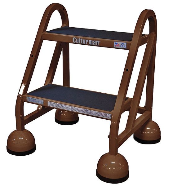 SKU G0896583Categories Material HandlingDescription Step Stool Product Group Rolling Step, Number of Steps 2, Overall Height 22 in, Material Steel, Load Capacity 450 lb, Top Step Height 18 in, Top Step Depth 8 in, Bottom Width 22 in, Base Depth 20 in, Color Brown, Finish Powder Coated, Standards OSHA 1910.29 and ANSI A14.7, Ladder Actuation Spring-Loaded Casters, Step Tread Rubber Mat, Step Width 16 in$373.74 / eachWeb price