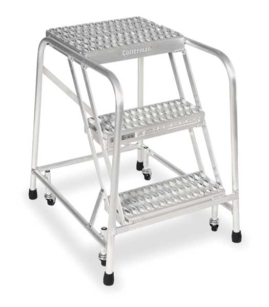 58 1/2 in H Steel Rolling Ladder, 3 StepsSKU G7265413Categories Material HandlingDescription Rolling Ladder, Material Steel, Platform Height 28 1/2 in, Handrails Included Yes, Handrail Height 30 in, Overall Height 58 1/2 in, Number of Steps 3, Unassembled, Load Capacity 450 lb, Step Tread Perforated, Platform Depth 10 in, Platform Width 16 in, Bottom Width 20 in, Base Depth 25 in, Overall Width 20 in, Climbing Angle 59 Degrees , Step Depth 7 in, Step Width 16 in, Ladder Actuation None, Finish Powder Coated, Color Gray, Standards ANSI, OSHAgraingerSKU: 9E384, mscSKU: 80591118, zoro_no: G7265413, mongo_id: 65bbe73d3aaddbd5a9082f0f