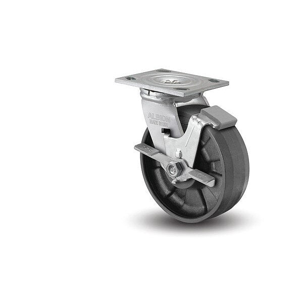 6" X 2" Non-Marking Polyurethane Swivel Caster, Face Brake, Loads Up To 1230 lb