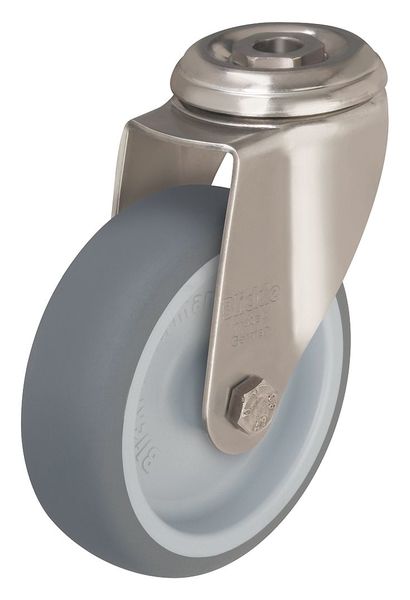 SKU G0493118Categories Material HandlingDescription Corrosion-Resistant Bolt-Hole Caster, 1/2 in Bolt Hole Dia., 1/2 in Mounting Bolt Dia., Stainless Steel Caster Frame Material, Stainless Steel Frame Finish, 0 to 299 lb Load Rating Range, 265 lb Load Rating, 1 Number of Wheels, Plain, 6 3/16 in Mounting Height, 4 7/8 in Wheel Dia., 1 1/4 in Wheel Width, Rubber Wheel/Tread Material, 85 Shore A Wheel/Tread Hardness, Soft, Yes Non-MarkinggraingerSKU: 44YU55, mscSKU: , zoro_no: G0493118, mongo_id: 65bbee17526e052139aebebc