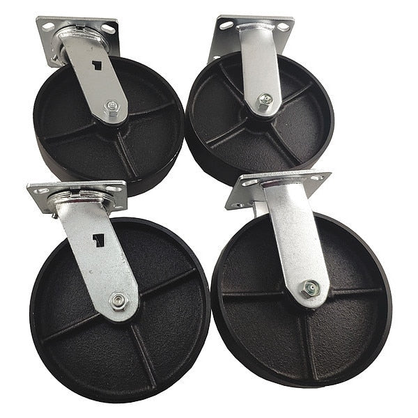 SKU G3721813Categories Material HandlingDescription Rigid, Swivel, Standard Plate Caster Kit, Load Rating 4800 lb, Swivel Lock Type No Lock Included, Wheel Dia. 8 in, Wheel Width 2 in, Wheel/Tread Material Cast Iron, Wheel Core Material Cast Iron, Non-Marking Yes, Number of Wheels 1, Caster Brake Type No Brake Included, Tread Shape Standard, Package Quantity 4$212.61 / eachWeb price