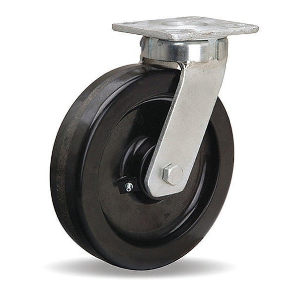 Rigid Plate Caster, Rubber, 8 in., 700 lb.