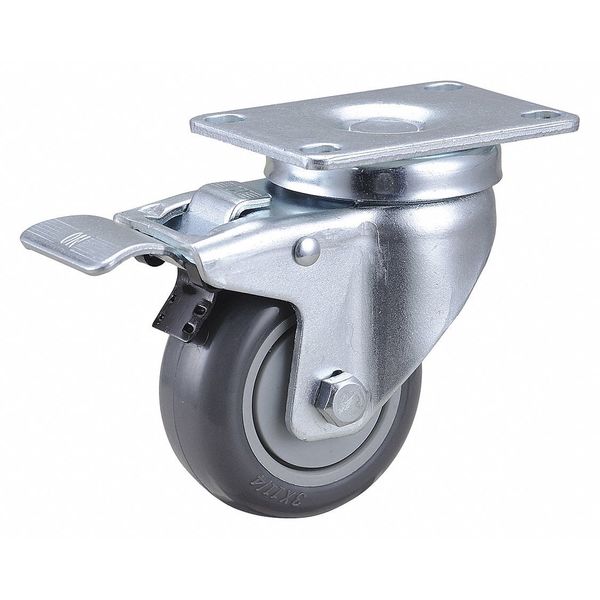Plate Caster, 3" Wheel Dia., 275 lb., Gray