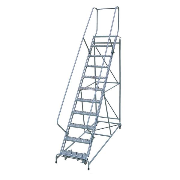 133 in H Steel Rolling Ladder, 10 StepsSKU G5206820Categories Material HandlingDescription Rolling Ladder, Material Steel, Platform Height 100 in, Handrails Included Yes, Handrail Height 30 in, Overall Height 133 in, Number of Steps 10, Assembled, Load Capacity 450 lb, Step Tread Expanded Metal, Platform Depth 28 in, Platform Width 24 in, Bottom Width 32 in, Base Depth 88 in, Overall Width 32 in, Climbing Angle 59 Degrees , Step Depth 7 in, Step Width 24 in, Ladder Actuation Weight Activated Step Lock, Finish Powder Coated, Color Gray, Standards ANSI, OSHAgraingerSKU: 41LG22, mscSKU: , zoro_no: G5206820, mongo_id: 65bbee24526e052139af0a68