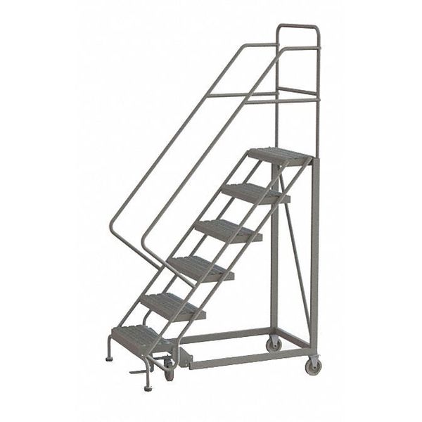96 in H Steel Rolling Ladder, 6 StepsSKU G0978288Categories Material HandlingDescription Rolling Ladder, Material Steel, Platform Height 60 in, Handrails Included Yes, Handrail Height 36 in, Overall Height 96 in, Number of Steps 6, Unassembled, Load Capacity 450 lb, Step Tread Perforated, Platform Depth 17 in, Platform Width 24 in, Bottom Width 35 in, Base Depth 66 in, Overall Width 35 in, Climbing Angle 50 Degrees , Step Depth 8 1/2 in, Step Width 24 in, Ladder Actuation Foot Activated Step Lock, Finish Powder Coated, Color Gray, Standards ANSI, OSHA, Includes 2-1/2 in Rubber PadsgraingerSKU: 25NV42, mscSKU: , zoro_no: G0978288, mongo_id: 65bbee24526e052139af0a4a