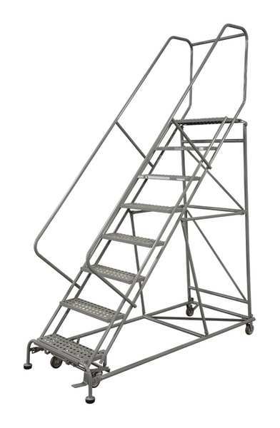 SKU G9840205Categories Material HandlingDescription Rolling Ladder, Material Steel, Platform Height 110 in, Handrails Included Yes, Handrail Height 30 in, Overall Height 143 in, Number of Steps 11, Unassembled, Load Capacity 450 lb, Step Tread Abrasive Mat, Platform Depth 14 in, Platform Width 24 in, Bottom Width 32 in, Base Depth 80 in, Overall Width 32 in, Climbing Angle 59 Degrees , Step Depth 7 in, Step Width 24 in, Ladder Actuation Weight Activated Step Lock, Finish Powder Coated, Color Gray, Standards ANSI, OSHAgraingerSKU: 9GG25, mscSKU: , zoro_no: G9840205, mongo_id: 65bbedfe526e052139ae24ab