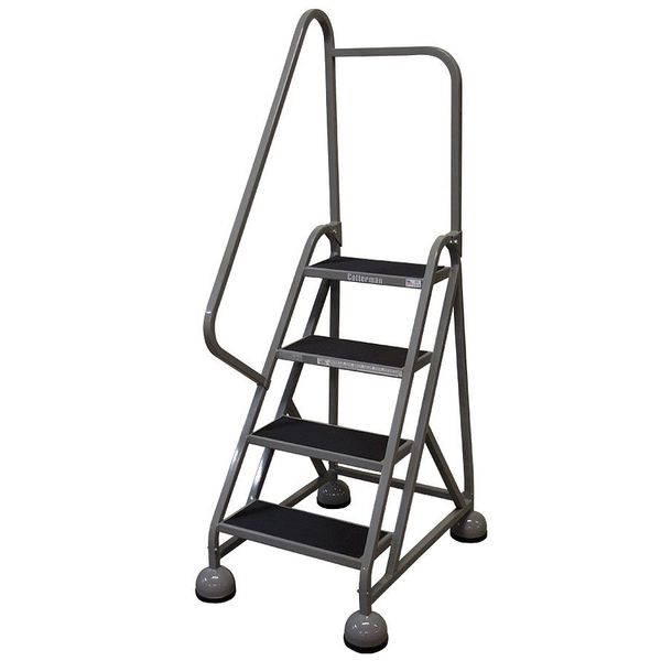 66 in H Steel Rolling Ladder, 4 StepsSKU G2125859Categories Material HandlingDescription Rolling Ladder, Material Steel, Platform Height 36 in, Handrails Included Yes, Handrail Height 30 in, Overall Height 66 in, Number of Steps 4, Unassembled, Load Capacity 450 lb, Step Tread Antislip Vinyl, Platform Depth 8 in, Platform Width 16 in, Bottom Width 25 in, Base Depth 34 in, Overall Width 25 in, Climbing Angle 59 Degrees , Step Depth 8 in, Step Width 16 in, Ladder Actuation Weight Activated Step Lock, Finish Powder Coated, Color Gray, Standards ANSI, OSHA, Includes Left HandrailgraingerSKU: 6LYE2, mscSKU: , zoro_no: G2125859, mongo_id: 65bbedfe526e052139ae24d7