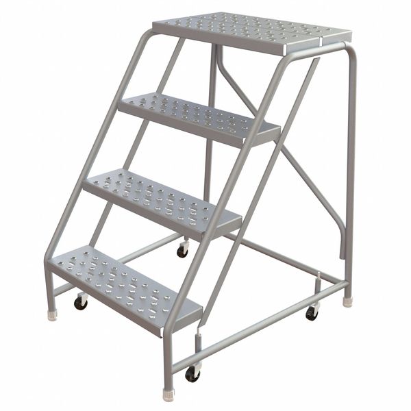 SKU G706904548Categories Material HandlingDescription Rolling Ladder, Material Aluminum, Platform Height 40 in, Handrails Included No, Overall Height 40 in, Number of Steps 4, Assembled, Load Capacity 350 lb, Step Tread Perforated, Platform Depth 14 in, Platform Width 24 in, Bottom Width 32 in, Base Depth 37 in, Climbing Angle 56 Degrees , Step Width 24 in, Ladder Actuation Spring Loaded Casters, Color Silver, Rear Exit NograingerSKU: 799ZH2, mscSKU: , zoro_no: G706904548, mongo_id: 65bbedfe526e052139ae24aa
