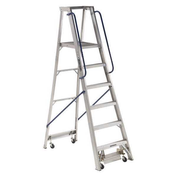 SKU G3263386Categories Material HandlingDescription Platform Stepladder, Ladder Height 7 ft 7 in, Platform Width 16 in, Platform Depth 20 1/4 in, Platform Height 5 ft 8 in, Load Capacity 300 lb, Bottom Width 27 in, Base Spread 55 1/2 in, Material Aluminum, Series AP5000, Number of Steps 6, Step Depth 3 in, Step Tread Ribbed, Rung/Step Spacing 12 in, ANSI Type IA, Includes Bodyweight Activated Casters, Handrails, Heavy Duty Gusset Bracing, Slip-Resistant Platform, Top Rail Guard, Standards ANSI, OSHA, Net Weight 57 lbgraingerSKU: 33J695, mscSKU: , zoro_no: G3263386, mongo_id: 65bbedfe526e052139ae24eb