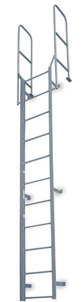 16 ft 8 in Fixed Ladder, Steel, 14 Steps, Forward Exit, Gray Powder Coated FinishSKU G2131897Categories Material HandlingDescription Fixed Ladder, Walk-Thru Included Yes, Exit Forward, Overall Height 16 ft 8 in, Overall Width 20 in, Material Steel, Load Capacity 300 lb, Number of Steps 14, Top Step Height 13 ft, Rung Dia. 3/4 in, Rung/Step Spacing 12 in, Step Width 16 in, Finish Gray Powder Coated, Standards OSHA and ANSIgraingerSKU: 5FZD2, mscSKU: , zoro_no: G2131897, mongo_id: 65bbedfe526e052139ae24e4