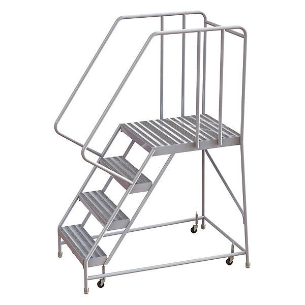 SKU G0977929Categories Material HandlingDescription Rolling Ladder, Material Aluminum, Platform Height 40 in, Handrails Included Yes, Handrail Height 32 in, Overall Height 72 in, Number of Steps 4, Assembled, Load Capacity 350 lb, Step Tread Ribbed, Platform Depth 28 in, Platform Width 24 in, Bottom Width 32 in, Base Depth 51 in, Overall Width 32 in, Climbing Angle 56 Degrees , Step Depth 7 in, Step Width 24 in, Ladder Actuation Spring-Loaded Casters, Finish Aluminum Mill, Color Aluminum, Standards ANSI, OSHA, Includes Crutch TipsgraingerSKU: 25NY08, mscSKU: , zoro_no: G0977929, mongo_id: 65bbedfe526e052139ae2495